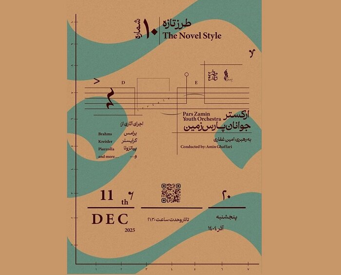 به نقل از روابط عمومی بنیاد رودکی، دهمین تجربه از طرح «طرز تازه» با اجرای موسیقی کلاسیک توسط ارکستر جوانان «پارس زمین» به رهبری امین غفاری پنجشنبه (۲۰ آذر) ساعت ۲۱:۳۰ در تالار وحدت برگزار میشود.