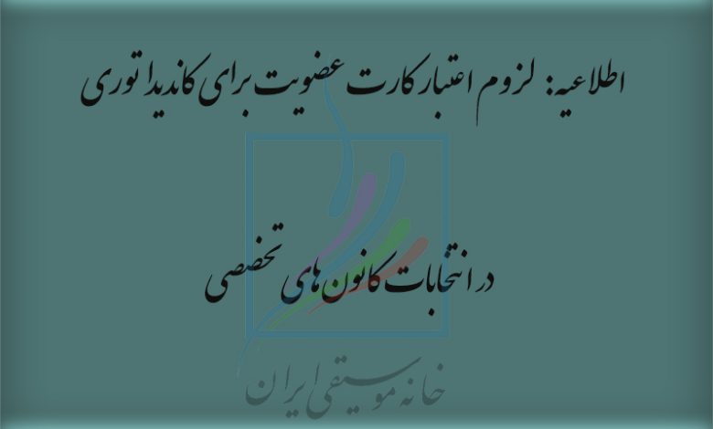 خانه موسیقی ایران از تمامی اعضا دعوت میکند پیش از ثبتنام یا شرکت در انتخابات، نسبت به تمدید اعتبار کارت عضویت خود اقدام کنند تا از بروز مشکلات احتمالی در روند بررسی مدارک جلوگیری شود.