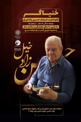 ، به پاس ۷۰ سال نوازندگی و سازسازی استاد حسن زادخیل، نکوداشتی ویژه ای، جمعه ۷ آذر ۱۴۰۴ ، ساعت ۱۶ در سالن آمفی تئاتر فرهنگ سرای سرو برگزار می شود این مراسم بههمراه نمایش آثار آلات موسیقی استاد در نگارخانه سرو برگزار خواهد شد و فرصتی است تا علاقهمندان به موسیقی با آثار این هنرمند بزرگ آشنا شوند.