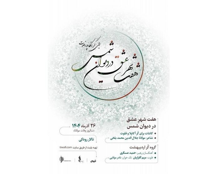 به نقل از روابط عمومی بنیاد رودکی، کنسرت گروه کُر «اردیبهشت» با عنوان «هفت شهر عشق در دیوان شمس» به رهبری حمید عسکری به مناسبت سالروز وفات مولانا چهارشنبه (۲۶ آذرماه) ساعت ۲۰ در تالار رودکی برگزار می‌شود.